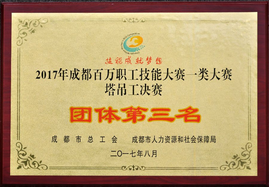 2017年8月14—15日,由成都市總工會、成都市人社局主辦、成都市總工會基建工委承辦、中建三局協(xié)辦的“技能成就夢想”2017年成都百萬職工技能大賽塔吊工比賽在中建三局中科院成都分院遷建項目成功舉行。來自成都市塔機制造廠家、建筑施工企業(yè)及設備租賃公司的17支代表隊參加了比賽。成都市總工會黨組書記張余松、成都市人社局副局長李軍等領導親臨現(xiàn)場觀摩、指導,并為獲獎代表隊及個人頒發(fā)了獲獎證書。