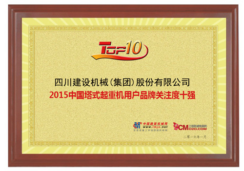 近日,中國路面機械網(wǎng)及工程機械電商網(wǎng)發(fā)布“2015中國工程機械用戶品牌關注度排行榜”,四川建設機械(集團)股份有限公司進入“2015中國塔式起重機用戶品牌關注度排行榜”前十強。